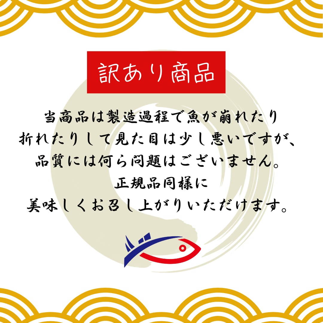 訳ありというのは製造過程で身が崩れたり、折れたり、皮が剥げたり、サイズや形が不揃いなためで、味には一切妥協がありません。